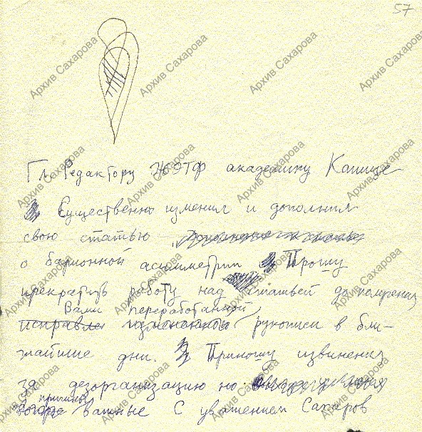 Записка с просьбой прекратить работу над печатаньем статьи [Барионная асимметрия Вселенной] в связи с изменениями и дополнениями к ней