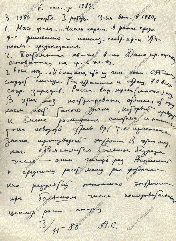 "К отч. за 1980 г.". Черновой вариант годового научного отчета