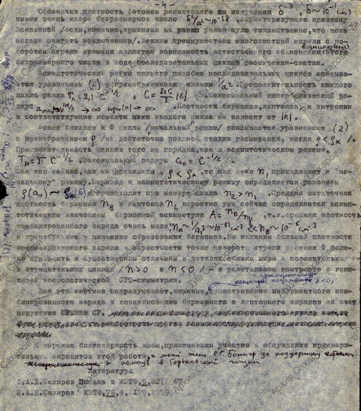 ["Космологические модели Вселенной с поворотом стрелы времени"]. Неполный текст раннего варианта статьи