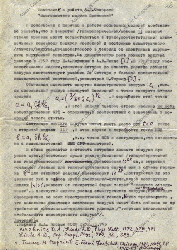 замечания А.Д. Линде (арх. ФИАН, "Горьковская папка) - 2л.