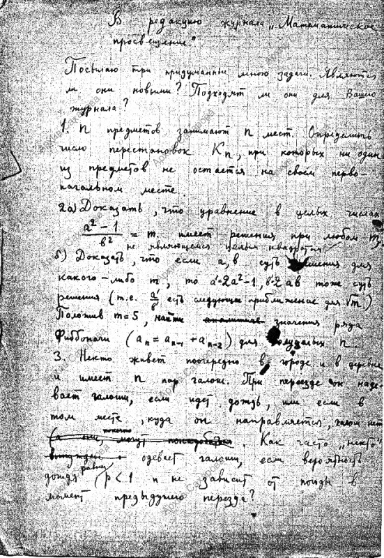 Письмо в редакцию с предложением трех любительских задач и решений к ним