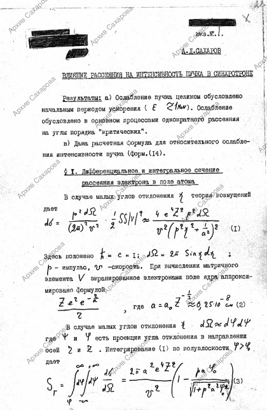 комментарий А.Н. Лебедева (А.Д. Сахаров. Научные труды. М.: ЦентрКом, 1995, с.111) - 1 л.