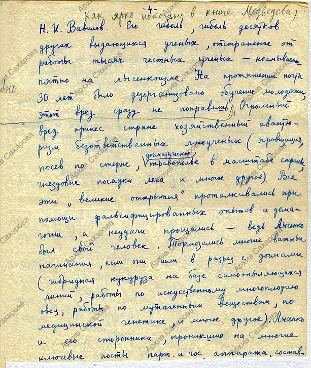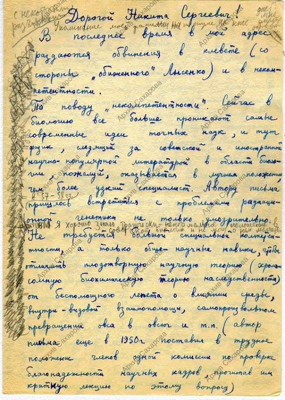 "Дорогой Никита Сергеевич!". Письмо Н.С. Хрущеву с разъяснением своей позиции в вопросах современной биологии