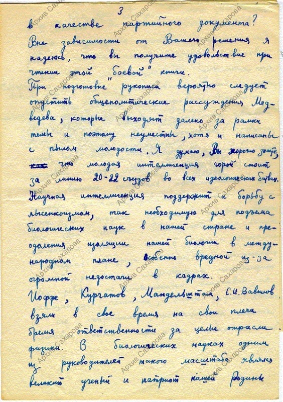 2) машинописный полный текст письма А.Д. Сахарова, подготовленный для публикации А.Верным- 3 л.