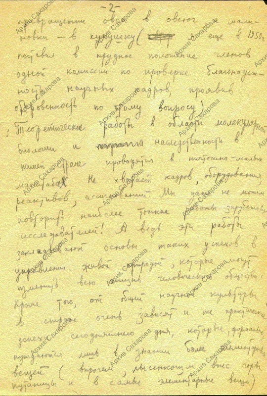 Одна страница черновика письма Хрущеву Н.С. с разъяснением своей позиции в вопросах современной биологии