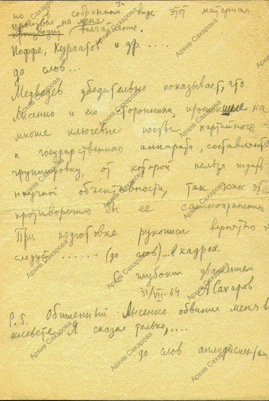 Медведев_Ж.А., Курчатов_И.В., Иоффе, Лысенко_Т.Д., Сахаров_А.Д.