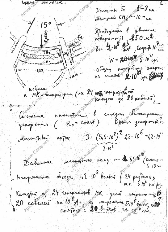 Записка А.Д. Сахарова с оценками характеристик варианта проекта сверхмощного ускорителя 1968 г. иллюстрирует комментарий А.И. Павловского к статье Сахарова "Взрывомагнитные генераторы"