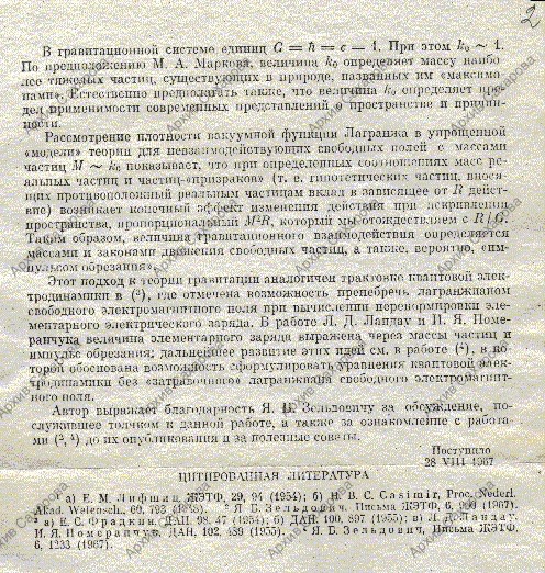 Эйнштейн_А., Риччи, Лагранж, Марков_М.А., Ландау_Л.Д., Померанчук_И.Я., Лифшиц_Е.М., Казимир_(Casimir_H.B.C.), Фрадкин_Е.С., Сахаров_А.Д., Зельдович_Я.Б.