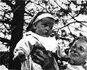 Бабушка держит Андрея на вытянутых руках