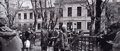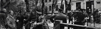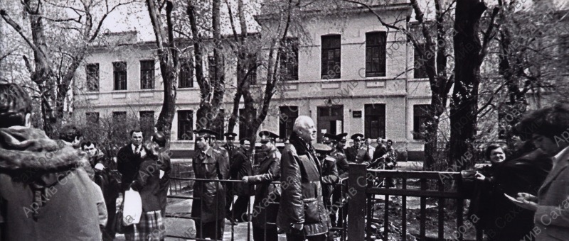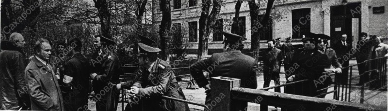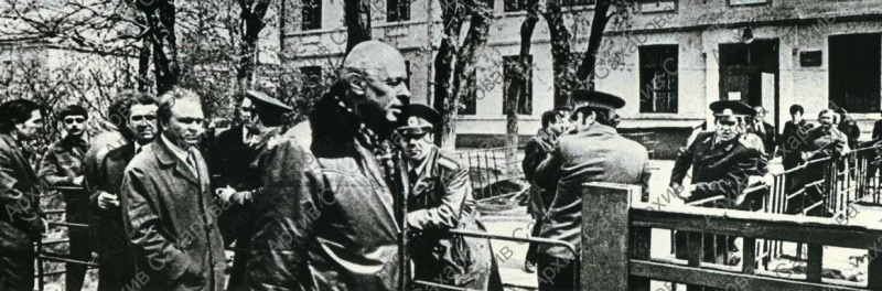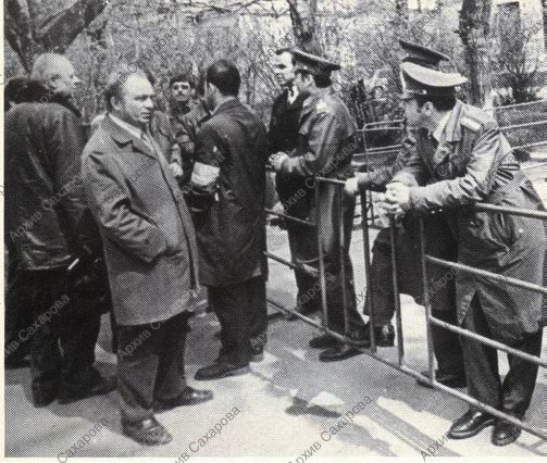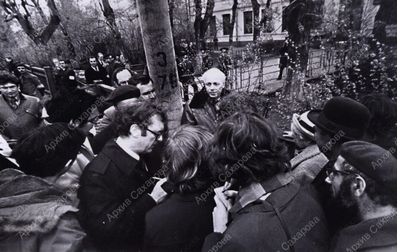 Четыре фотографии А.Д.Сахарова перед зданием суда во время суда над Ю.Ф.Орловым, в группах с неизвестными