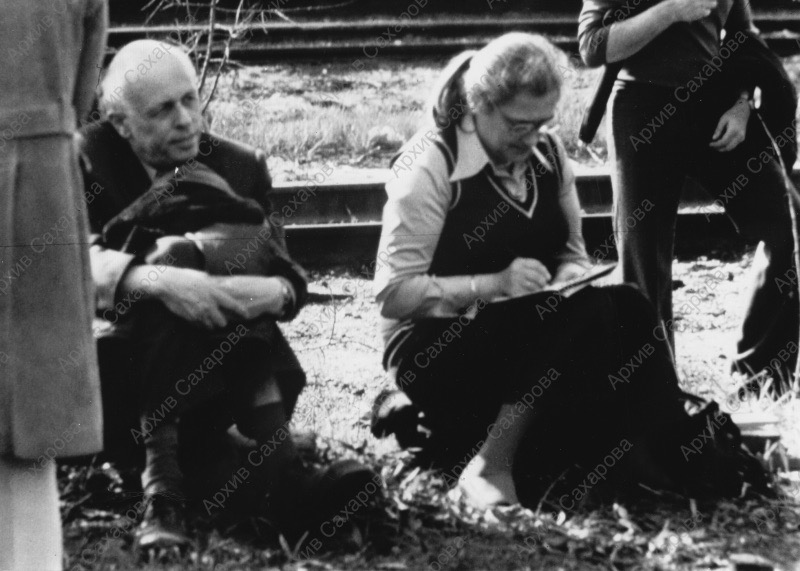 Фотография А.Д.Сахарова и Е.Г.Боннэр во время суда над Ю.Ф.Орловым