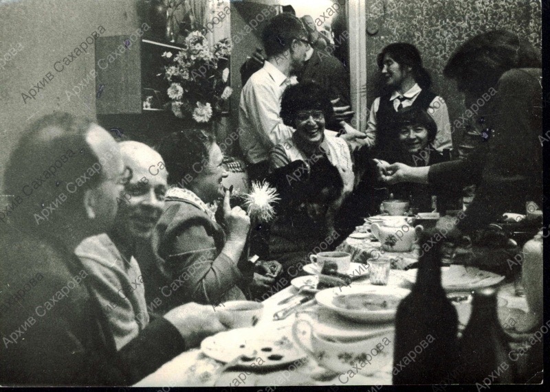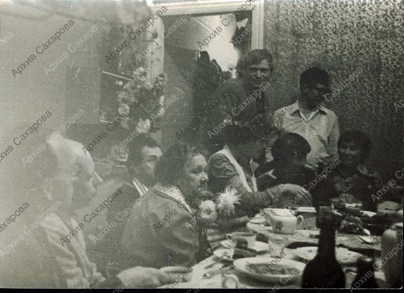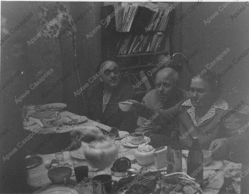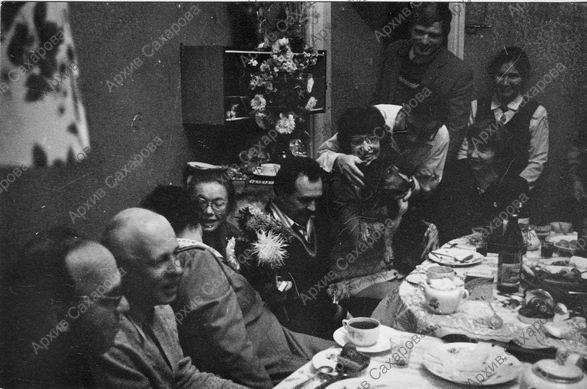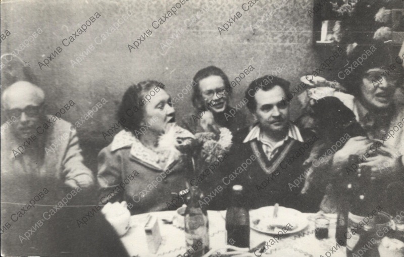 Шесть фотографий А.Д.Сахарова на 70-летии С.В.Каллистратовой, в группах людей