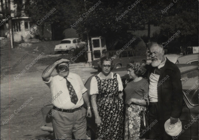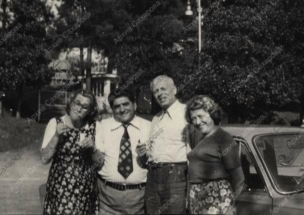 Фотография А.Д.Сахарова и Е.Г.Боннэр с Р.Д.Орловой и В.А.Якобашвили в Сухуми, около автомашины