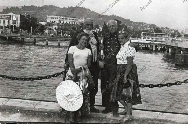 Фотография А.Д.Сахарова и Е.Г.Боннэр с Л.З.Копелевым и Р.Д.Орловой в Сухуми, у моря