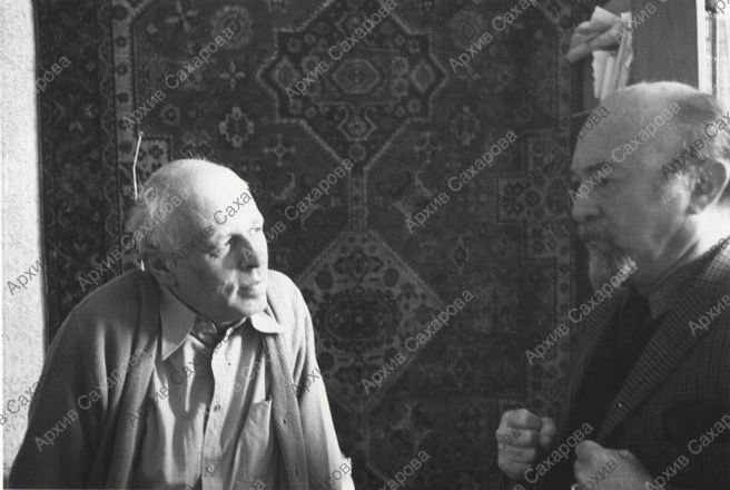 Две фотографии А.Д.Сахарова дома с неизвестным