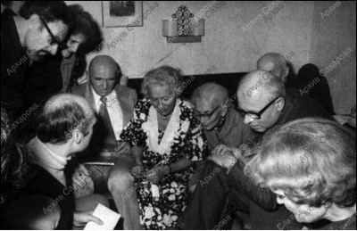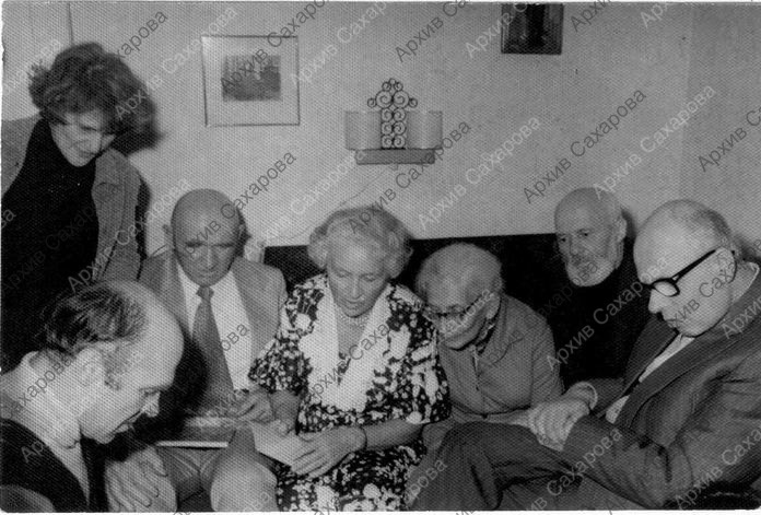 Две фотографии А.Д.Сахарова на дне рождения П.Г.Григоренко и З.М.Григоренко в группах из 7 и из 9 человек