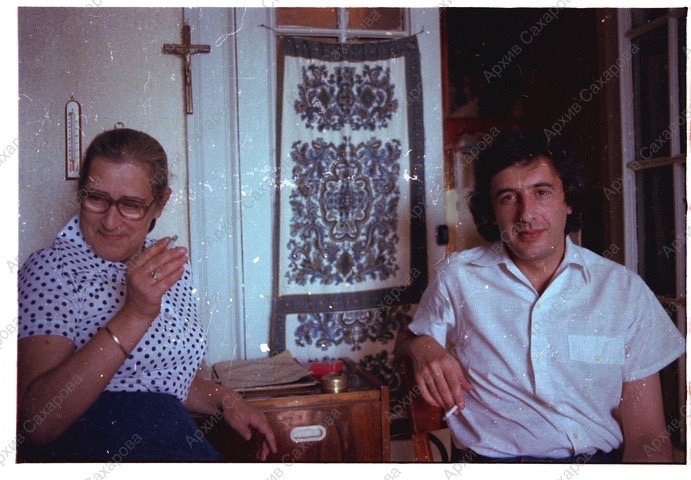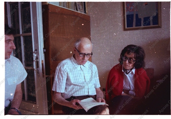 Фотография А.Д.Сахарова у себя дома с Ариной Гинзбург и Ю.Ярым-Агаевым