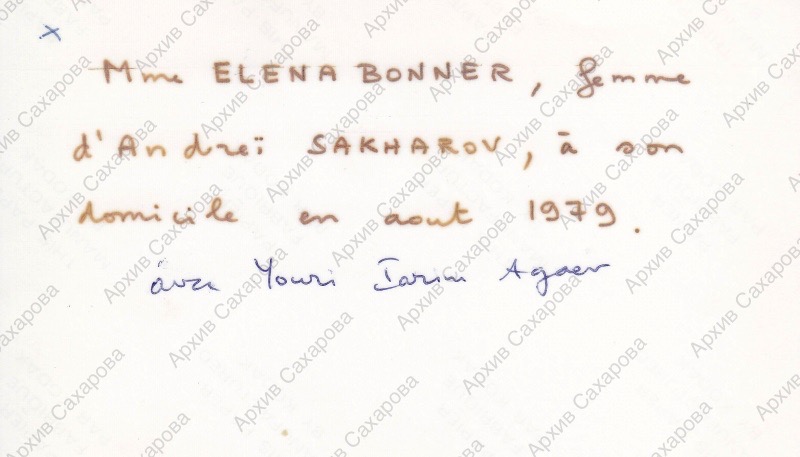 фотография Е.Г.Боннэр и Ю.Ярым-Агаева, сделанная одновременно с фотографией Сахарова, и надпись на обороте - 2 л.