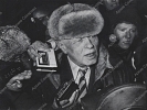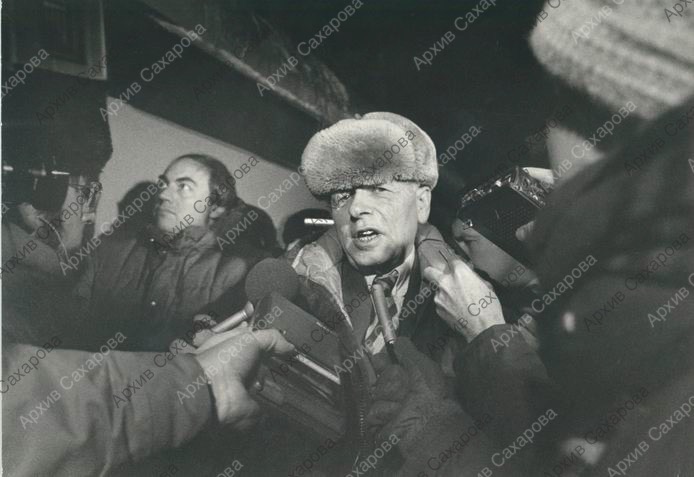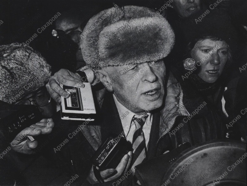 Две фотографии интервью А.Д.Сахарова на Ярославском вокзале после приезда из Горького