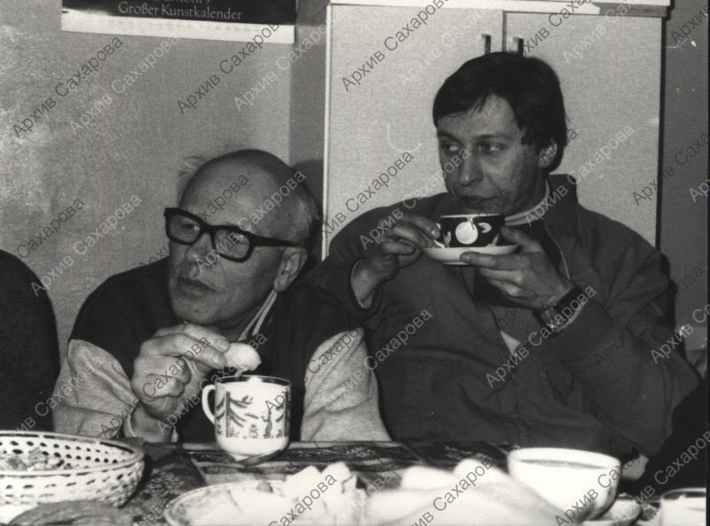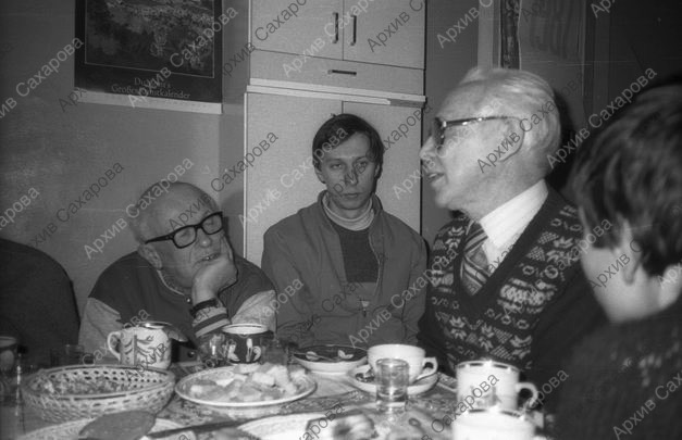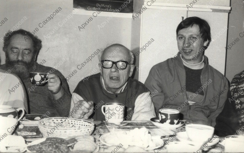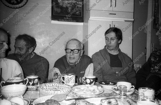 Четыре фотографии А.Д.Сахарова на кухне за столом, с гостями