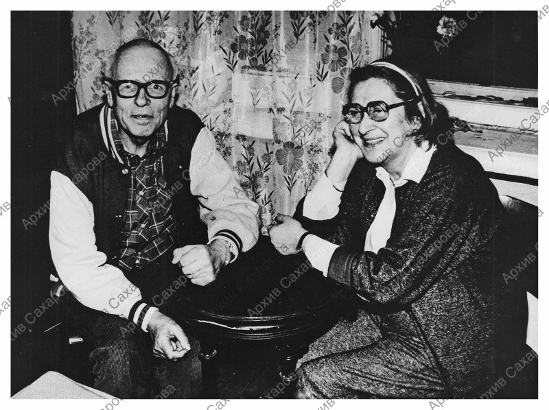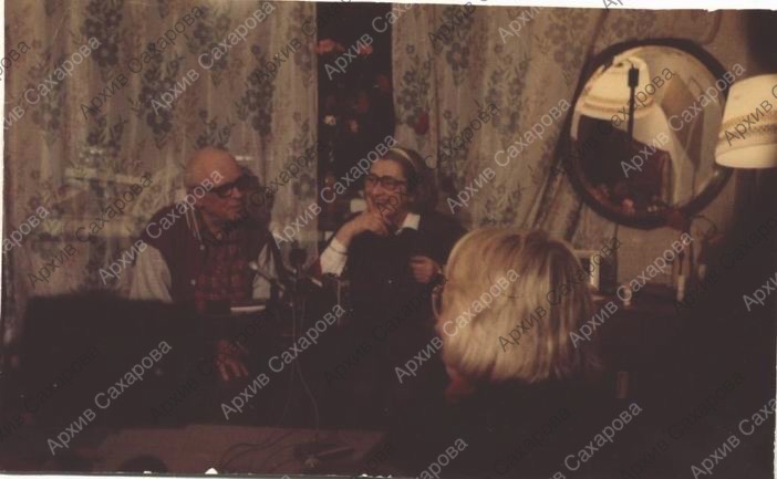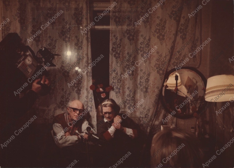 Три фотографии А.Д.Сахарова и Е.Г.Боннэр у них дома во время интервью иностранным корреспондентам