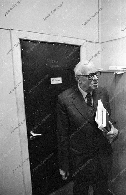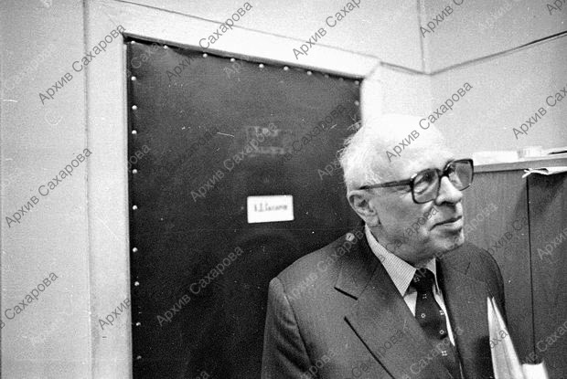 Две фотографии А.Д.Сахарова у двери своего кабинета в ФИАНе