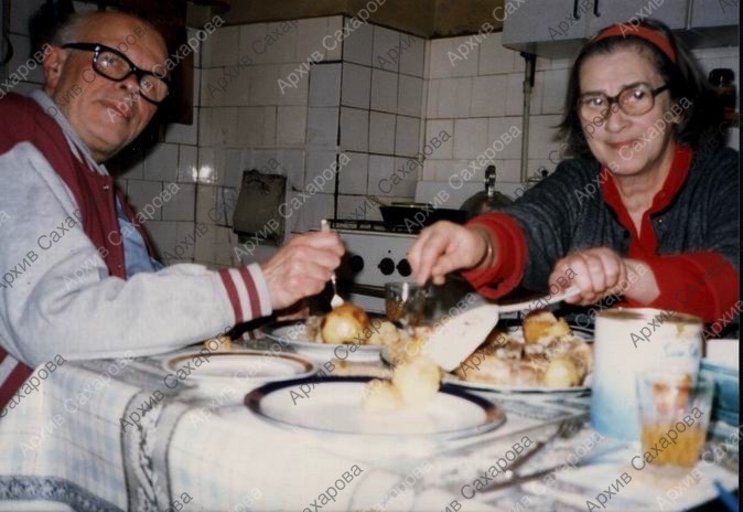 Фотография А.Д.Сахарова и Е.Г.Боннэр дома на кухне