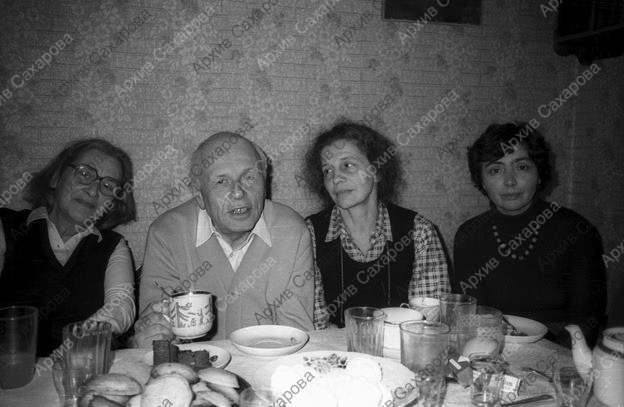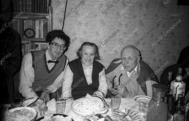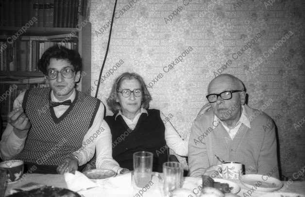 Три фотографии А.Д.Сахарова во время встречи А.И.Семенова с друзьями в квартире Сахаровых