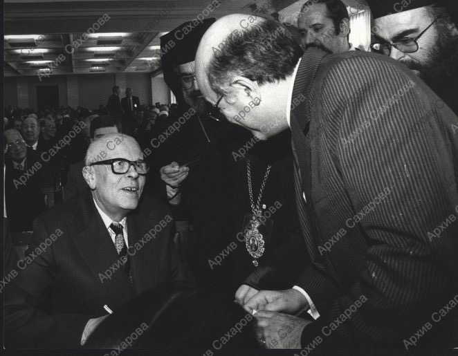 Фотография А.Д.Сахарова на Международном форуме "За безъядерный мир, за выживание человечества", в группе людей