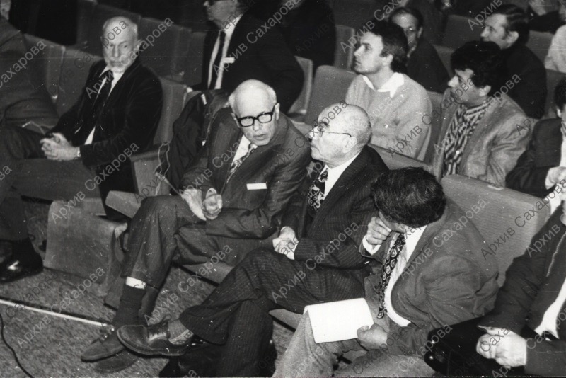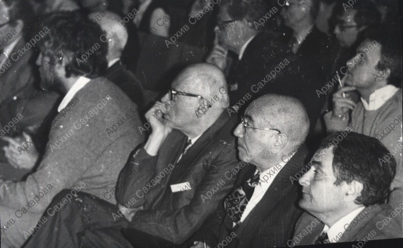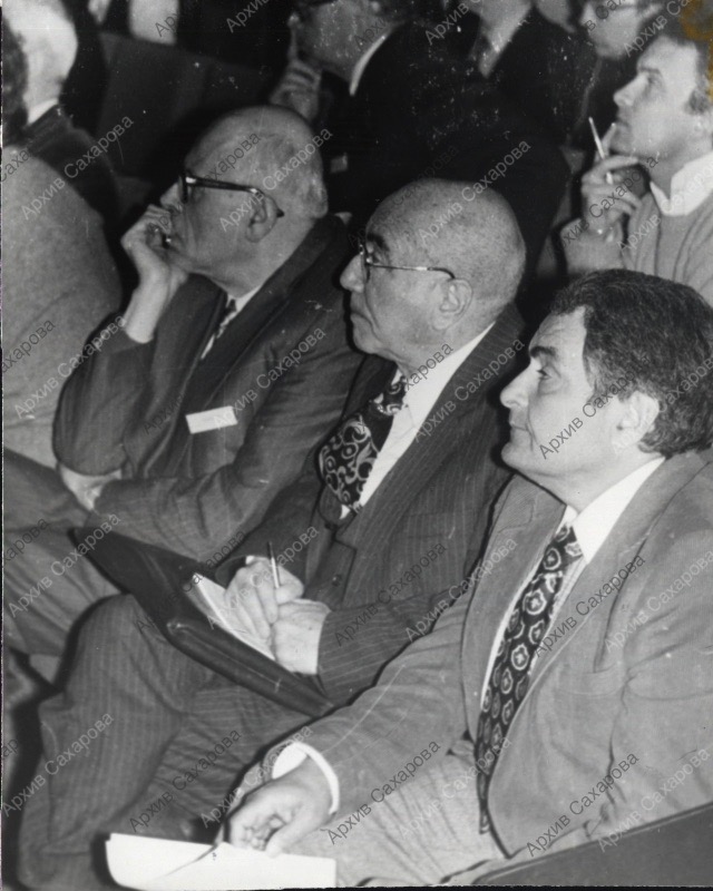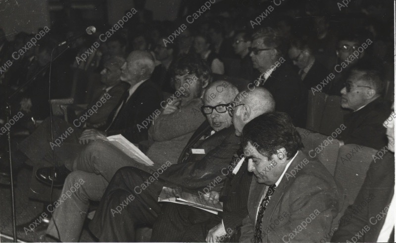 Три фотографии А.Д.Сахарова на заседании во время IV семинара по квантовой гравитации, в группе людей