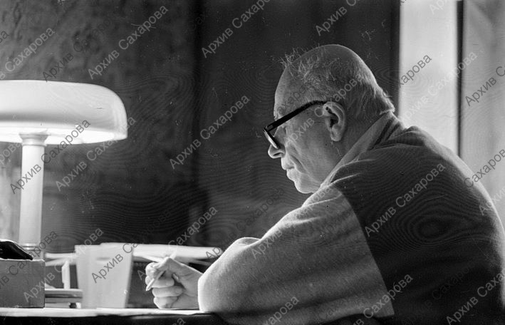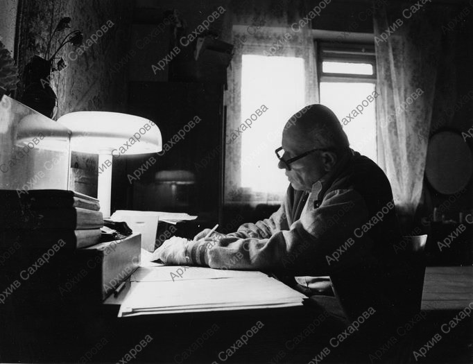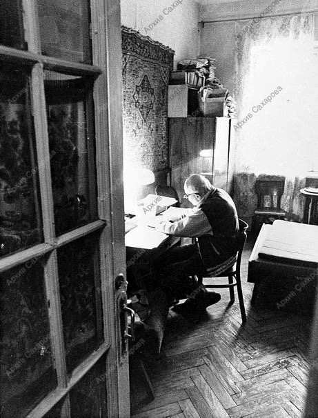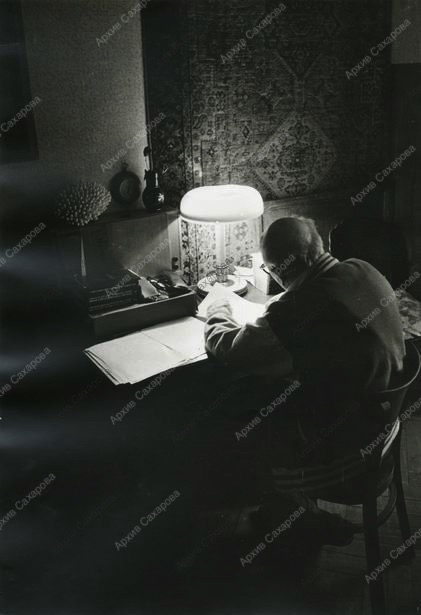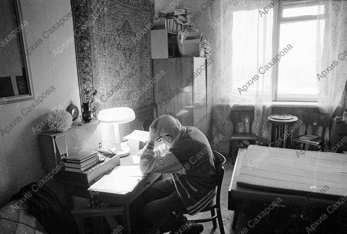 Шесть фотографий А.Д.Сахарова дома за письменным столом во время работы над интервью О.Морозу и Ю.Росту