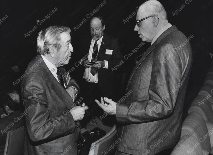 Фотография А.Д.Сахарова и Д.Визнера во время Международного форума "За безъядерный мир, за выживание человечества"