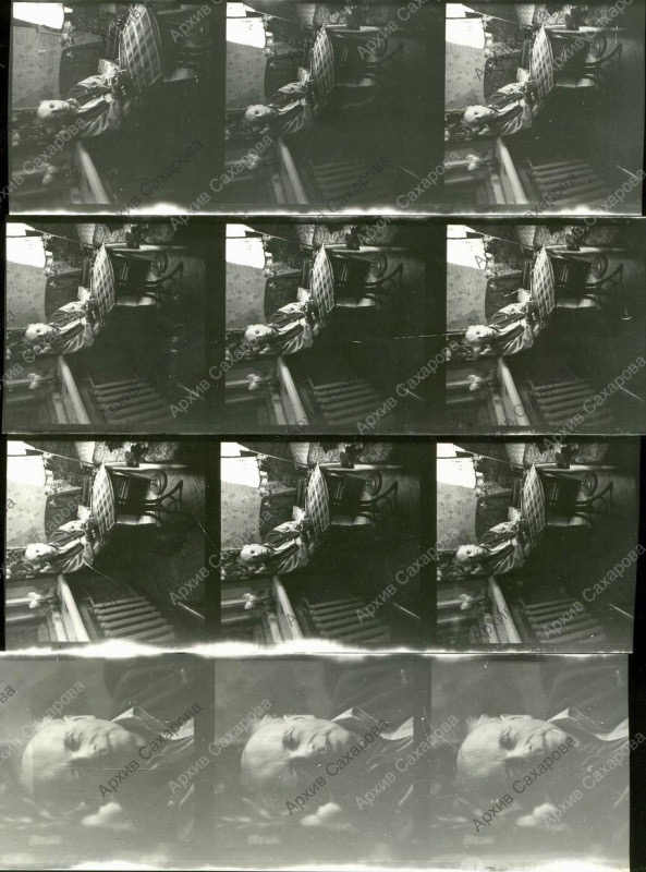 Лист с контрольными отпечатками фотографий А.Д.Сахарова, сделанных Ю.Ростом 6 января 1987 г.
