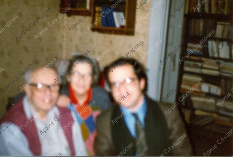 Фотография А.Д.Сахарова и Е.Г.Боннэр дома в комнате, с неизвестным