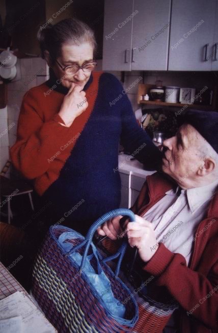 Фотография А.Д.Сахарова и Е.Г.Боннэр дома на кухне