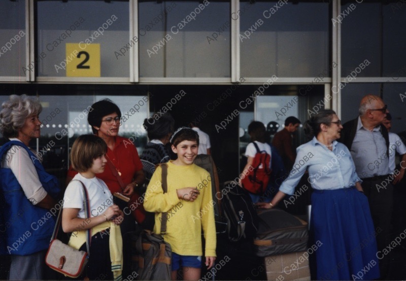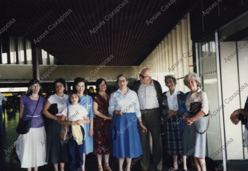 Две фотографии А.Д.Сахарова и Е.Г.Боннэр во время проводов Т.Янкелевич с детьми в аэропорту Шереметьево