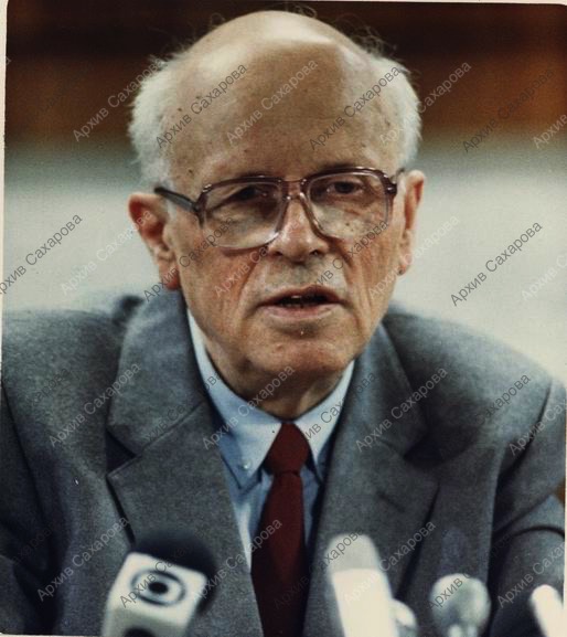 Фотография А.Д.Сахарова во время его пресс-конференции в пресс-центре МИДа