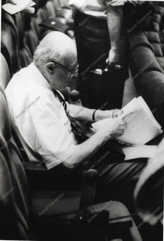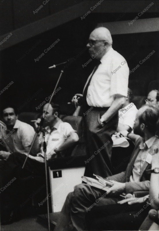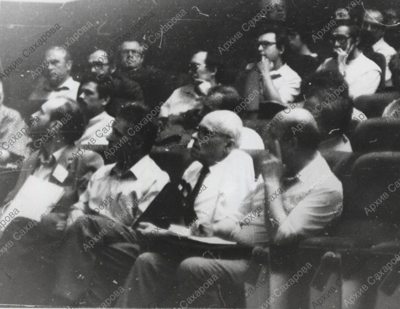 сюжет съемки определен по надписи на обороте двух фотографий; дата определена по времени проведения конференции (см. Дневники, т.3, с.355) и присутствию Сахарова в Москве 25 июня (см. Хронологию жизни А.Д.Сахарова)