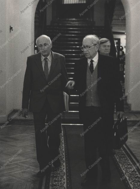 Фотография А.Д.Сахарова и Д.С.Лихачева в день избрания в Совет директоров Международного фонда "За выживание и развитие человечества"