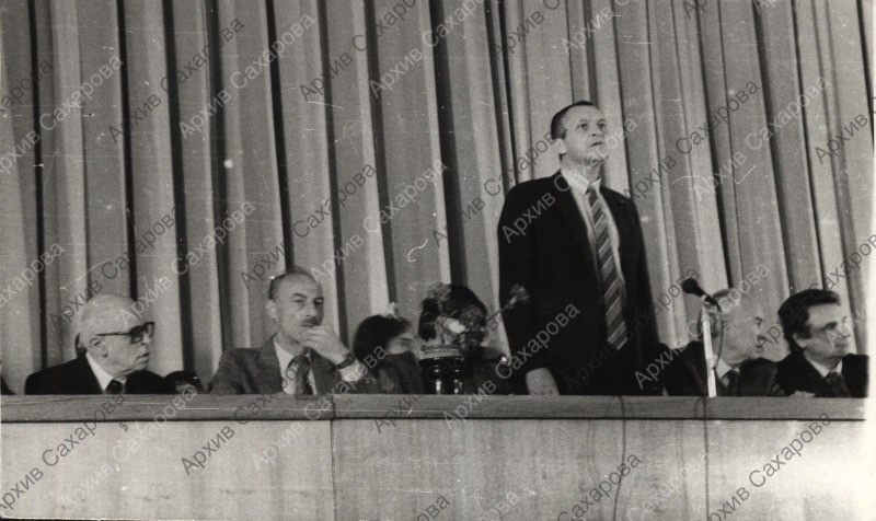 Пять фотографий А.Д.Сахарова в президиуме первой подготовительной конференции "Мемориала" в Центральном доме кинематографистов