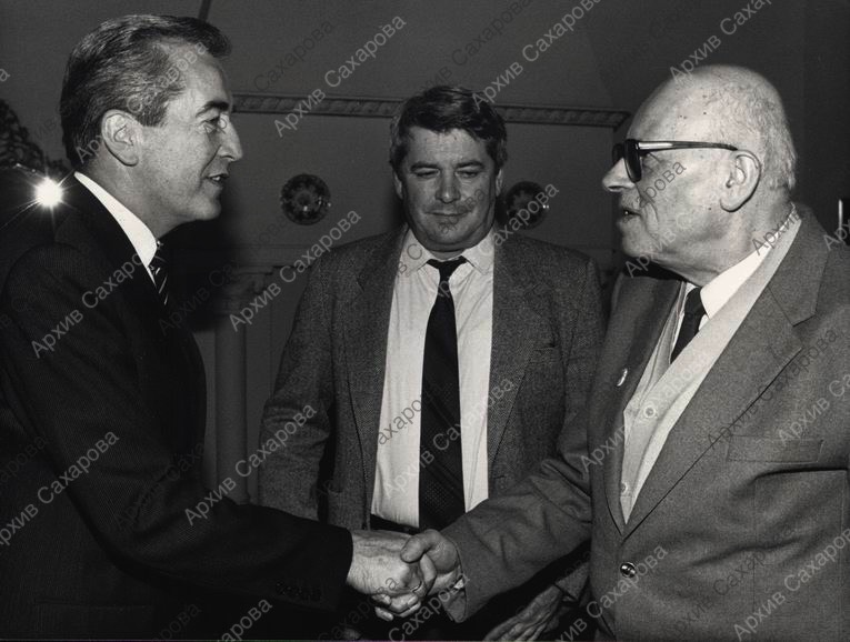 Две фотографии А.Д.Сахарова и Ю.Н.Афанасьева в резиденции посла США в СССР Дж.Мэтлока, в группе людей