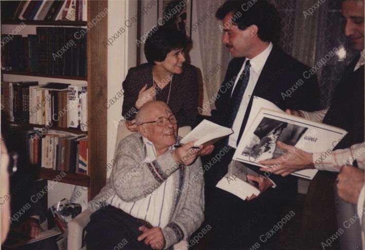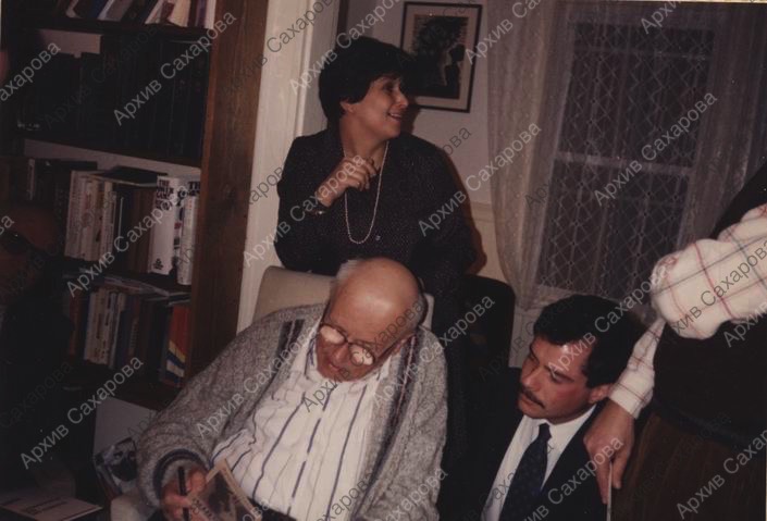 Две фотографии А.Д.Сахарова у Янкелевичей в США, во время домашнего приема для друзей