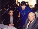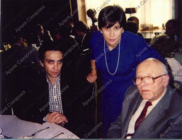 Фотография А.Д.Сахарова на торжественном обеде после церемонии награждения правозащитной премией Дж.Мини, с Татьяной и Ефремом Янкелевичами