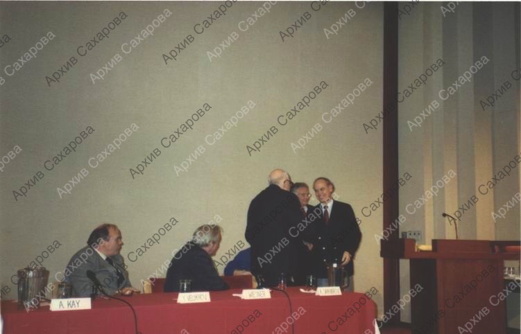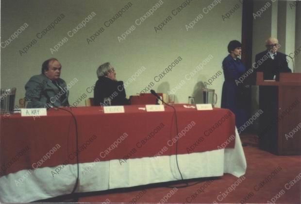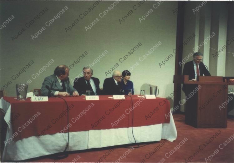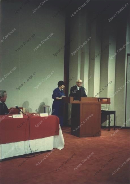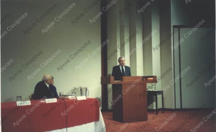 Шесть фотографий А.Д.Сахарова на пресс-конференции членов советской делегации Международного фонда "За выживание и развитие человечества" в Американской академии наук и искусств