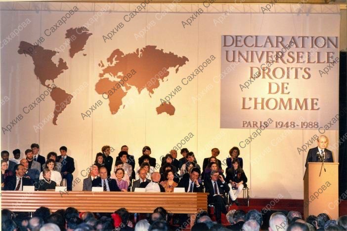Тридцать фотографий о пребывании А.Д.Сахарова и Е.Г.Боннэр в Париже на праздновании 40-летия Всеобщей декларации прав человека