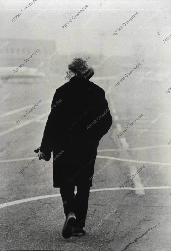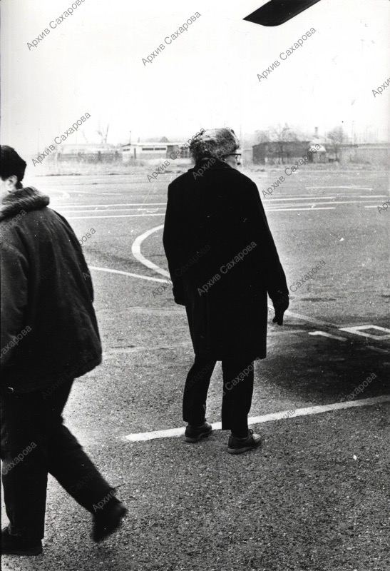 Три фотографии А.Д.Сахарова на летном поле в Ереване перед полетом в Спитак