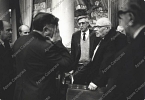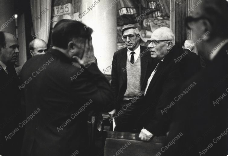 Фотография А.Д.Сахарова во время перерыва Общего собрания АН СССР, в группе людей