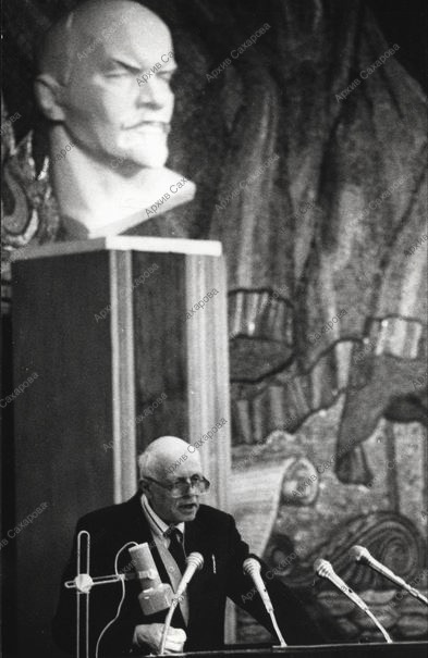 Фотография А.Д.Сахарова во время выступления на Общем собрании АН СССР