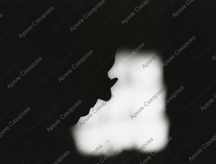 Фотография А.Д.Сахарова (силуэт портрета) во время Общего собрания АН СССР