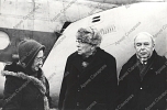 Фотография А.Д.Сахарова, Е.Г.Боннэр и Л.М.Баткина около вертолета во время полета к месту землетрясения в Спитаке